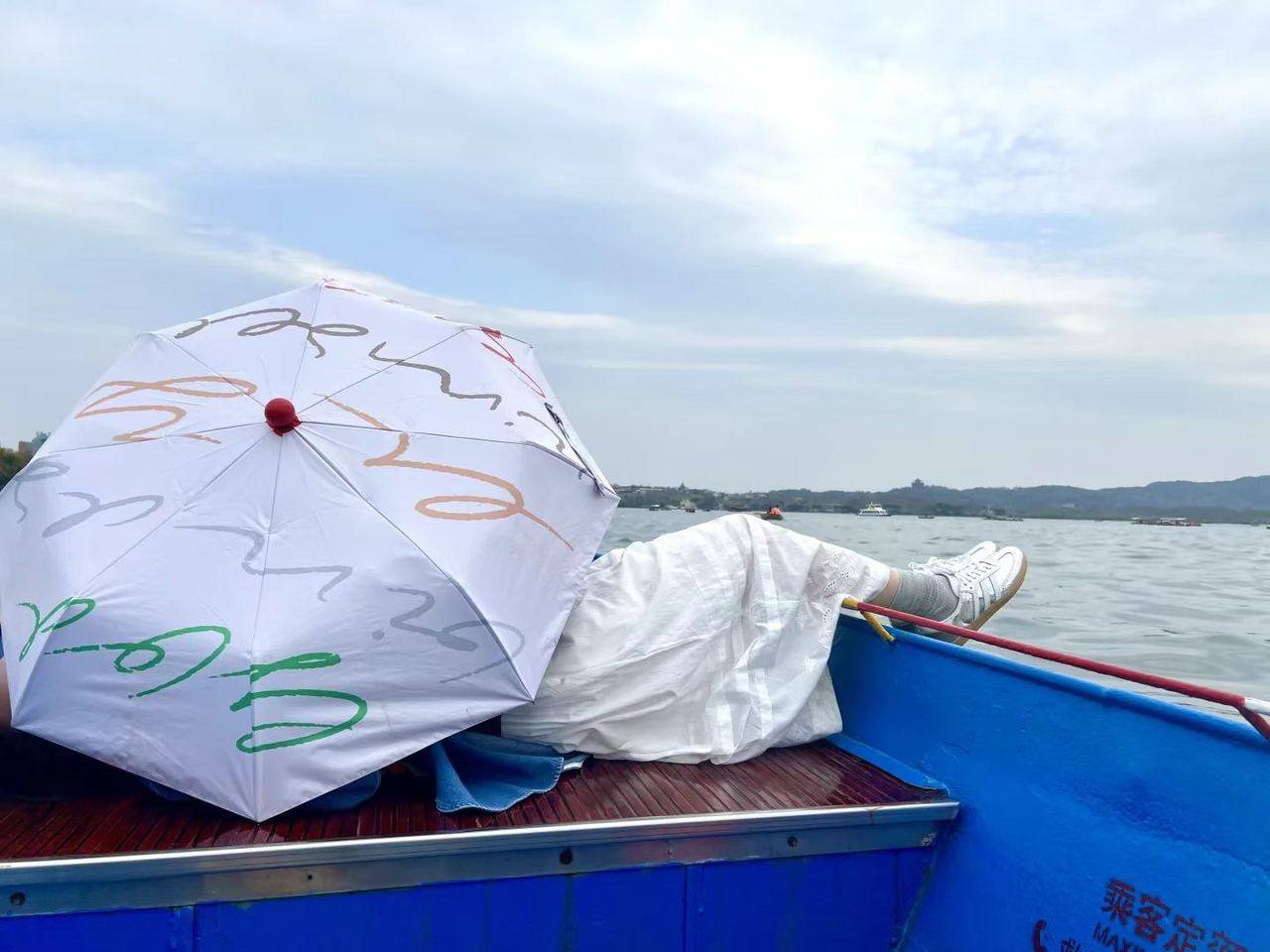 其中一名女生说,自己就在附近上班,平时午休期间也会和同事们到西湖边转转。不过,在自划船上躺下还是头一遭,“感觉很晃,总担心会翻船。”